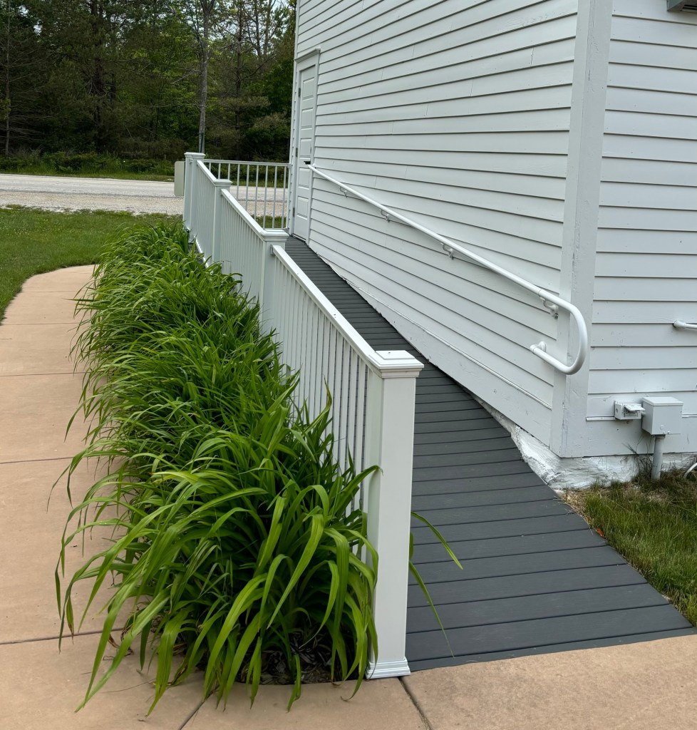 The handicapped accessible ramp was upgraded allowing wheelchair access with durable plastic material.